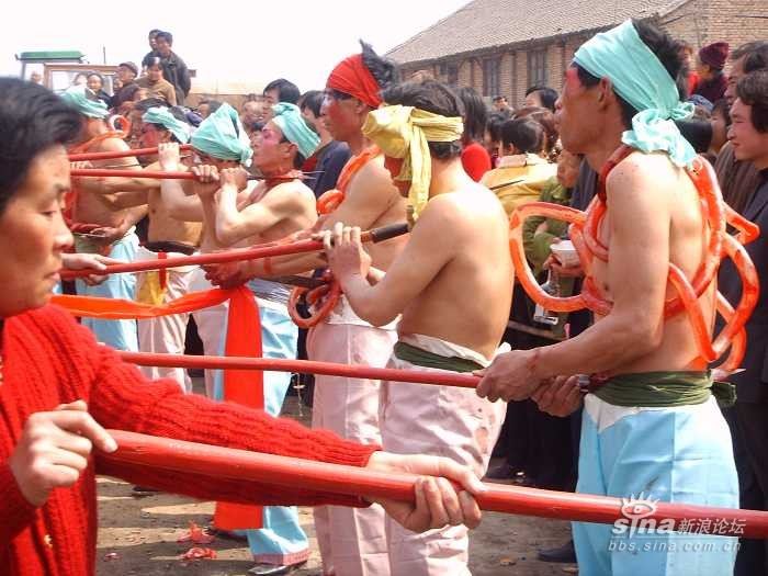每年正月十五左右,晋南小县-临猗,各个乡镇农村都要红红火火的“闹热闹”(有的地方叫社火)。耍龙的、耍狮子的、踩高跷、旱船、高抬、花车,最经典的、最罕见的就是县城附近田村的血故事和黄河沿岸三几个村子的扎马角(另有图文详记)。