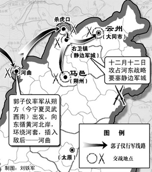 军人战死沙场,这是他们的职责。天宝十四年十一月,郭子仪接到平叛的命令,带着自己本部约万余兵马千里擒王,应该就抱着必死的决心。当时安禄山兵威正炽,一路南下所向披靡,山西又是他多年经营之重地,守将皆为心腹悍将。郭子仪绝对想不到,这一战,成为他个人显赫功业和唐王朝平定叛乱的起点。他只是怀着“国危君难,正是军人赴死之时”的勇气和信念而来。安禄山也没有想到,在他势如破竹南下之时,有一支军队会将他本以为稳固的后方搅动得天翻地覆。而这支军队,不像他先前所碰到的其他唐王朝军队一样无能,将不知兵,军不习战——郭子仪带领的这支朔方镇军来自塞外边防前线,剽悍勇猛,不但让安禄山在静边军城外丢下七千具尸体,而且将成为挽救大唐天下的中坚军事力量。