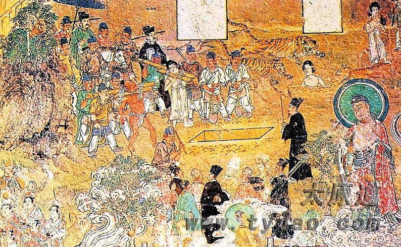 开化寺的宋代壁画,虽然是以佛教的经变故事为主题,用于宣扬佛法的威力和因果报应。但是由于宋代世俗化的影响,宗教题材发生了很大的变化,用现实景象,宋装的人物,中国的景物,来表现外国的传说(印度佛教),在这里佛教被完全中国化了,儒家的孝道、社会上各种人物的活动都成为壁画中的题材,宋代的社会、历历在目,生活化、世俗化的程度是前所未有的,可以看作是宋代社会生活的风俗画。