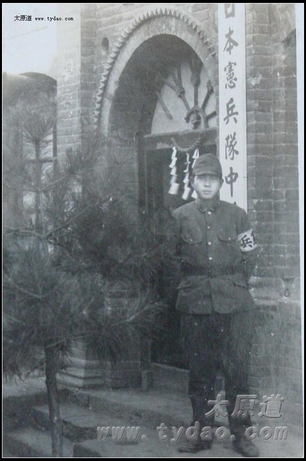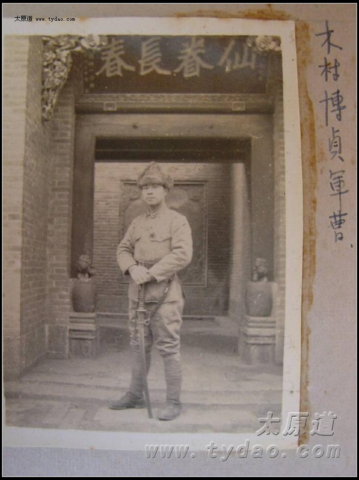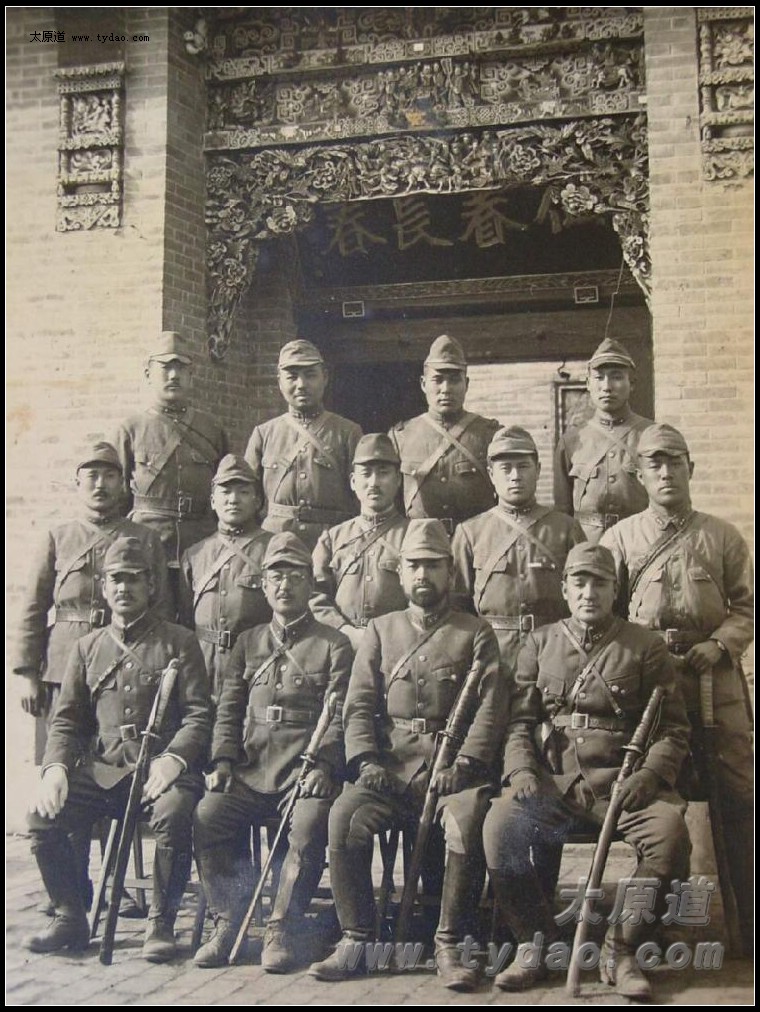 日军留影,背后的匾额为阎锡山所书