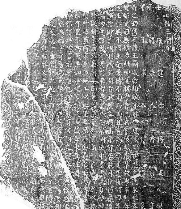 傅山的祖父傅霖,叔祖傅震、傅霈兄弟三人都先后进士及第,荣登科甲,人称“三凤凰”,为此,明朝太原府为傅霖、傅震、傅霈筑“三凤坊”,并为傅震、傅霖筑“黄甲联芳坊”,为傅霈筑“青云接武坊”。万历元年,由傅霖撰文、傅震书丹、傅霈篆额,兄弟三人共同为崛(山围)山龙王庙完成了《崛(山围)山龙王庙碑记》。傅氏三兄弟撰书的这一古碑,近日有幸重见天日。