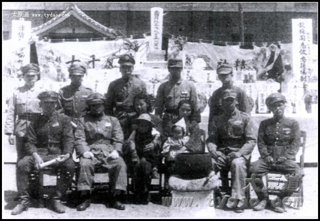 “残留日军”军官与战死者遗属合影 |