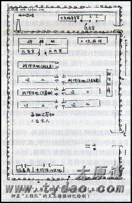 幸存战俘王丕绪绘制的太原工程队平面示意图 |