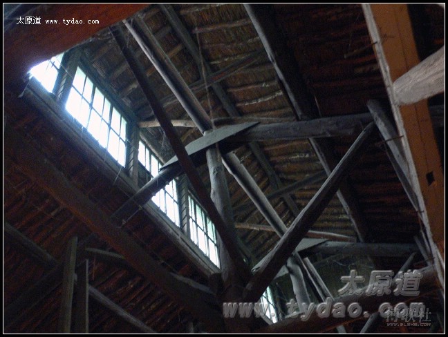 营房内的木结构梁架和天窗 |
