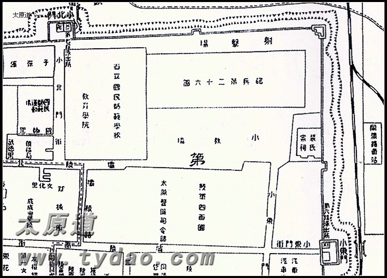 1935年出版的太原城区地图中的国民师范 |