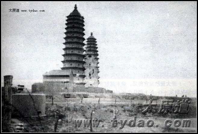 被解放军炮兵炸飞半边的双塔寺宣文塔 |