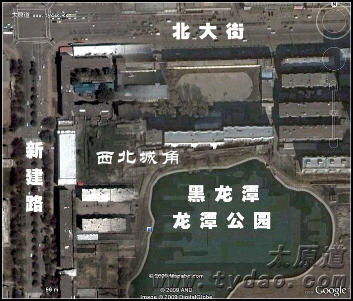 太原旧城墙西北角卫星照片 |