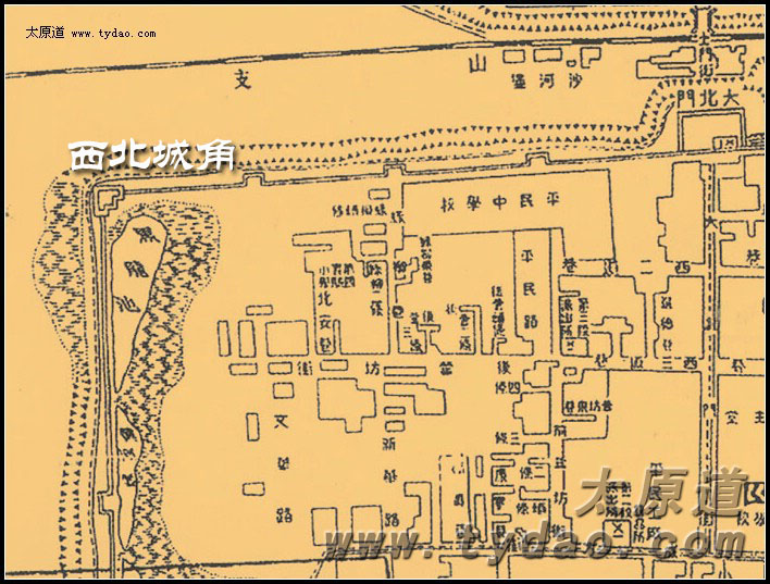 1935年太原市区图中的北城角 |