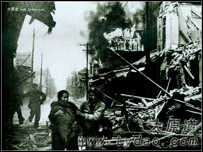 总攻日的太原城,图片中救扶母子二人的解放军士兵不久牺牲 |