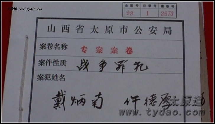 太原市公安局的戴炳南、仵德厚专案案卷及交待材料 |