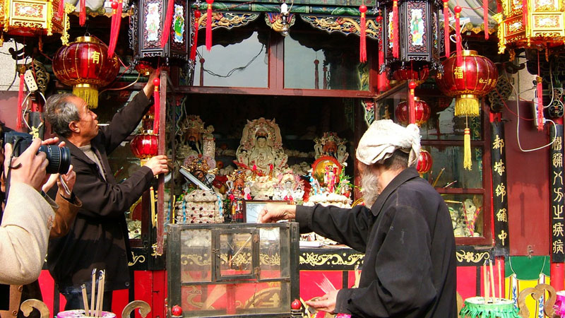 柳林盘子会又被称为“天官会会”、“小子会会”,是春节期间流行在我省柳林县县城及城郊穆村一带的盛大民俗活动。“盘子”是一种制作精美的组合型阁楼式仿古建筑模型,因其具有独特的祭祀功能,被视为“浓缩的庙宇、扩大的神龛”。 “盘子”是古代“祭盘”的俗称。“盘子会”起源于古代搭棚祭神活动。明代,柳林镇商品经济发展迅速,原始的神棚不能满足民间宗教信仰活动的需求,开始有匠人模仿唐代之“祭盘”,将民间庙宇与神像按比例缩小,这种浓缩的庙宇活卯活鞘,易装易拆易保存,比用砖木修建的庙宇造价低,一般高约三米至四米,呈现出四角或六角,分为单层或多层,内设数个神龛,供奉天官、财神、观音等神像,凡是常见的庙宇神灵,几乎全部可以供于一座阁楼之中。盘子内部装饰精雕细刻、油漆彩绘,绘画主要分布在内装板上,以各种历史故事、神话人物、神话传说为主要题材,如四大金刚、十八罗汉、麒麟送子、观音菩萨、二十四孝图等。盘子实质是一座不分佛、道的浓缩性寺庙,一座盘子就可以成为一处民间祭祀场所,活动场地可大可小,很受民众欢迎。明末清初,当地形成了具有一定规模的盘子会。起初,盘子的建筑材料采用质地细密而又硬实的上等木料,总体结构更加合理,装饰精美绝伦。关于盘子会的功能,柳林民间有许多说法,但最主要的功能是求子。不生育或想生儿子的人家,就会去偷盘子里供献的面塑,有的偷一对“小鸟”,有的把“枣囤囤”盖子偷走。如果来年心愿得偿,他们就会用几倍、几十倍的供品来还愿,同时还会在盘子的周围挂上大大小小的红灯笼,灯笼上写的最多的就是“有求必应”。 盘子会被认为是当地民间文化活动的“百科全书”。在传统的盘子图案雕刻中,牡丹、莲花是常用的主题,云纹的样式很多,滴水头部刻有各种各样的“寿”字、“万”字。盘子内摆放各种食品祀神,面塑供品最具特色,面塑种类有枣山、枣洞洞、大供、三牲(面猪、面羊、面鱼)、面雁等。人们习惯在盘子前用木柴和煤块搭成一个个圆炉形的旺火。每到夜晚,旺火燃烧起来,人们围绕在旺火周围,看民间艺人表演弹唱,一般由一男一女演唱,旁边有二胡、锣鼓等伴奏。也有的会在盘子前搭起戏台、棚子唱大戏。在这样盛大的民俗活动中,素不相识的人们相聚在一起,手拉手扭秧歌。上世纪80年代以后,有的盘子会加入了流行歌曲演唱,并用迪斯科音乐伴奏,青少年为主要参与者。 盘子会以盘子为核心和载体,不仅保留和传承了众多民间艺术和技艺,而且通过祭盘的相关活动,能够化解纠纷、增强民众团结与互助。盘子会保留、传承了民间社区组织,以每座盘子为核心,由一名“主人家”(社首)和七八名纠首组织社家,负责筹集钱资、搭盘、出盘、祭祀、娱神、卸盘等活动,社家每年轮换,民主推选、民主自治,是乡土社会稳定和谐的重要基础之一。 每年的正月十五前后,全国各地慕名到柳林的人们徜徉在一座座盘子之间,感受当地独特的民俗氛围。每当夜幕降临,在盘子边搭起煤塔并点燃,祭拜后人们围着旺火扭秧歌,场面非常温馨、壮观。同时,当地的各种民间艺术活动也在这一时段掀起了高潮,伞头秧歌、唢呐吹奏、转九曲等活动纷纷亮相,人们载歌载舞,共庆节日,祈求来年风调雨顺。 目前,柳林有各类盘子二百余座,县城有一百二十余座,穆村有八十余座。现存最古老的盘子是清光绪二十六年(1900)穆村沙曲的木刻盘子。柳林县最大的盘子制作户是穆村的王兴地,全县能独立完成盘子制作的仅四五人。 ■ |