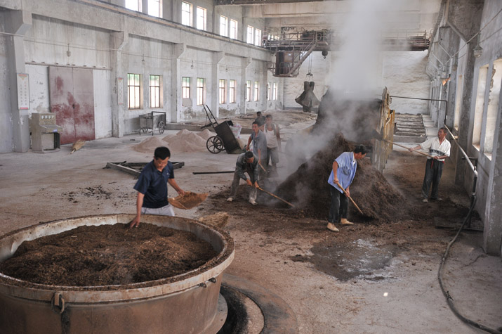 应县古称应州,地处雁门关外,气候严寒,酒成为人们生活中必备的物品,豪饮习俗也促成了当地酿酒业的兴盛,酿酒工艺形成了自己的特色。梨花春酒酿造以大麦、豌豆、麸皮为制曲原料,以高粱为酿酒原料,在纯自然的生态环境下酿造成酒。 应县的传统酿酒工艺源远流长。明万历年间的《应州志》记载:应州有一古迹金凤井,水甘甜清澈,用它酿出的酒尤为醇香味美;明成化五年(1469),应州酿酒业酒税的收入就占全州税收的6%。到了清初,虽然对酿酒业进行限制,但据乾隆年间《应州志》记载,当时仍有缸坊11家。清同治年间,应县有名的酒作坊有:刘氏的万盛魁、张氏的聚和店、吴氏的德泰泉、何氏的福和永、康氏的福成永、郭氏的兴盛泉、赵氏的义德成等。其中南泉村张氏聚和店的酒还进入了宫廷。直到今天,在老城区还保存着万盛魁酿酒作坊的遗址,保留有当时酿酒用的踩曲房、地瓮房、储酒房及敬酒神的牌位。据《中国实业志》记载,1936年应州有酿酒缸坊9家,年产酒19380公斤,1947年仅县城就有缸坊11家,城外产粮区也有缸坊数家。1956年多家酿酒作坊合并成公私合营酿酒厂,1974年合并成应县地方国营酒厂,这就是山西梨花春酿酒集团有限公司的前身。 与酿酒业经久不衰相对应的是传统的酿酒技艺得到了传承,并因地理环境的特点和汲取外来的先进技术而不断得到完善和发展,形成了一套有特色的工艺流程。制曲分六个步骤:润麦一般遵守“水少温高时间短,水多温低时间长”的原则,注意翻选堆积,要求每粒粮食都均匀地吸收水分。老艺人说,润麦后的标准是“表面收汗,内心带硬,口咬不粘牙,尚有干脆响声。如不吸汗,说明水温低;如咬出无声,则说明用水过多或时间过长”。粉碎,由石磨磨成70%的细面、30%的粗面,面粉用3个手指捏成型。有经验的制曲师一般用手捏一些即可判断出粉碎程度。配料,用粉碎好的大麦、豌豆与麸皮按照比例人工拌料,拌料时二人对立,用手把各种原料拌均匀,标准是“手捏成团不粘手”。将拌均匀的曲料用木斗放在石板上,人工踩曲,一般用青壮年男子按“先中后边踩三遍”的古法,先是用脚掌从中心踩一遍,再用脚跟沿边踩一遍,要求“紧、干、光”。上面完成后将曲箱翻转,再将下面踩一遍,完毕后再翻转至原来的面重复踩一次,即完成一块曲坯。最后将曲坯入室培养。 梨花春白酒传统酿造原料选用应县东上寨村一带的“狼尾巴”高粱,颗粒呈红黄色,棱瓣发青,磨成粉呈粉红色。用筛筛去杂质后,用磨把高粱粉碎成四六瓣,成梅花状。将粉碎好的原料面和清蒸好的辅料按照比例人工翻拌均匀。将配好料的面 米查,加水进行润料,利于糊化。将面 米查上甑锅蒸煮糊化,蒸煮糊化前将面 米查再翻拌一次,然后用木锹和簸箕将面 米查一层一层地装入甑锅,面 米查熟而不粘,内无生心,将蒸好的面 米查用木锹铲出甑锅放在干净的地面上摊薄、匀,进行自然冷散,中途翻拌数次。温度视季节而定。将冷散好的面 米查按比例加入 米查,用木锹进行翻拌,以用手掌捏住面 米查从手指缝挤出1至2滴水为宜,然后进行堆积,将堆积好的酒醅用竹篓运入缸里,盖上石盖进行发酵,地缸一般埋在地下,缸口与地面平齐。发酵时要掌握酒度的变化,一般遵循 “前缓升、中挺、后缓落”的原则。发酵到21天的酒醅用竹篓运至甑锅边,装甑时应按照 “稳、准、细、匀、薄、平”的原则进行操作,装甑蒸汽应按照“两小一大”的原则进行操作,流酒时蒸汽按照“中温流酒,大汽追尾”进行操作,接酒时依照酒花大小程度来判别酒头、原酒和酒尾,“看花接酒”是凭酿酒师傅的经验来判别的。 梨花春传统酿造技艺采用的中温制曲、堆积增香、地缸发酵、慢火蒸馏、分级贮藏等工艺操作,都是凭借酿酒师傅辈辈口传身授的,至今一些关键的工序仍需手工劳作。 ■ |