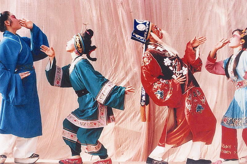 曲沃碗碗腔是流行于我省曲沃及周边地区的一种皮影戏腔调,因其主要击节乐器为小铜碗而得名,又因其领奏乐器月琴旧称“阮咸”,故也被称为“阮儿腔”。 碗碗腔原系陕西东部华阴、大荔一带皮影戏的唱腔,后传入曲沃。当地老艺人说,碗碗腔是在清末由陕西商人传到曲沃的;也有说是陕西逃荒的皮影艺人在曲沃演出时,当地人爱而效之,遂得以在曲沃流传。碗碗腔初入曲沃时仅限于临时搭台演出,形式活泼,曲调动听,加之班社小、要价低,小家小户有喜庆之事都喜欢邀请他们去演出助兴。后来搭起小戏台。曲沃碗碗腔在清末民初达到鼎盛,著名的班社有“陈小班”、“大富班”、“王柱子班”、“安六班”、“茹自茂班”、“保子班”等,并形成了不同的艺术流派。上演剧目以神话戏和武打戏为主,也有专供红白喜事和祝寿还愿演出的剧目。每年的元宵节和七月古庙会,仅县城就有十余家班社开台竞演。此时的活动范围扩展到蒲州、解州、绛州一带。民国初年,曲沃碗碗腔皮影班社发展到三十余个,剧目达到八十余个。后因军阀混战、民不聊生,皮影戏班也难逃厄运,纷纷解体,几乎陷入消亡的边缘。 新中国成立以后,在党和政府的关心支持下,四散的皮影戏老艺人重操旧业,搭班结社,恢复了以茹自茂、安六、王柱子为代表的15个皮影戏班社,使这一剧种得到振兴。此时,曲沃碗碗腔在强化自身特点的基础上,又吸收曲沃秧歌、蒲州梆子、眉户的腔调、曲牌,发展成为具有当地特点的碗碗腔剧种。20世纪50年代初,曲沃碗碗腔有了女演员,打破了过去只有一个男演员“保本”(集生、旦、净、末、丑于一身)的单调演唱,丰富了演唱色彩,使唱腔更加悦耳动听。1960年3月成立了曲沃县碗碗腔艺术学校,招收表演、音乐、舞台美术三个班共79名学生。1960年8月成立了曲沃县碗碗腔剧团,从此,小戏走上了大舞台,皮影也开始由真人扮演。 登台后的碗碗腔,吸收了众多剧种的服饰、脸谱、舞台美术及表演程式,表演形态上更多追求的是皮影戏的拙中之美,既夸张又浪漫,仍然保持着皮影戏的一些动作,如旦角在抒发欢快、轻佻或愤怒的情感时,一手指前,一手指后,身体小幅度前仰后颠;生角走台步时,两臂微屈,宽袖前后摆动,侧身缓缓而行,温文尔雅,舒展洒脱;武打更保留了皮影遗风,被称为“活皮影”。 曲沃碗碗腔剧目以三小戏为主,表现才子佳人悲欢离合的爱情戏占到较大比重,也有表现历史故事和社会生活的,加上现代戏,共有一百多个剧目。曲沃碗碗腔的语言用的是“蒲州邦子”的道白声韵,音乐方面具有优雅清新、委婉缠绵的特色,其唱腔属板式变化体,分上下句行腔。徽调式,无固定调高,以艺人嗓音条件定调。唱腔既有“欢音”,又有“哭音”,还有“高音”,传承了碗碗腔的“撩板”和“直杆二八”板式,按照行当及角色的情绪变化,使唱腔更加流畅,更加符合人物特性。伴奏加入了“中音板胡”,打击乐采用的是小直径马锣、蒲剧的大窝铙钹、曲沃秧歌中的小铰子。曲沃碗碗腔的打击乐点同唱腔板式一样分为慢、中、快、散四种类型,又分大铜器和小铜器两个种类,大铜器有气势、有魄力,宜于表现悲壮、高亢、宏伟、庄重的气氛;小铜器擅长表现潇洒、活泼、喜悦、欢快的情结。形成了“生、旦、净、末、丑”行当齐全,“吹、拉、弹、拨、击”各司其专,“编、导、灯、音、服”明确分工的规范化阵容。 据资料记载,曲沃碗碗腔最盛时期曾经一年演出320场,20世纪80年代中期,戏曲普遍不景气,曲沃碗碗腔也迅速衰落,上世纪80年代后期跌到低谷,演出少、发不了工资,演员纷纷改行。上世纪90年代后期情况好转,现在,曲沃碗碗腔演出以承担政府的活动为主。 ■ |