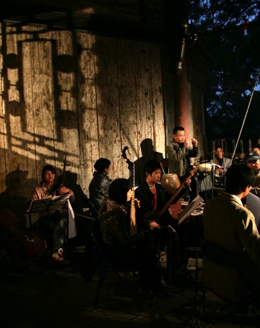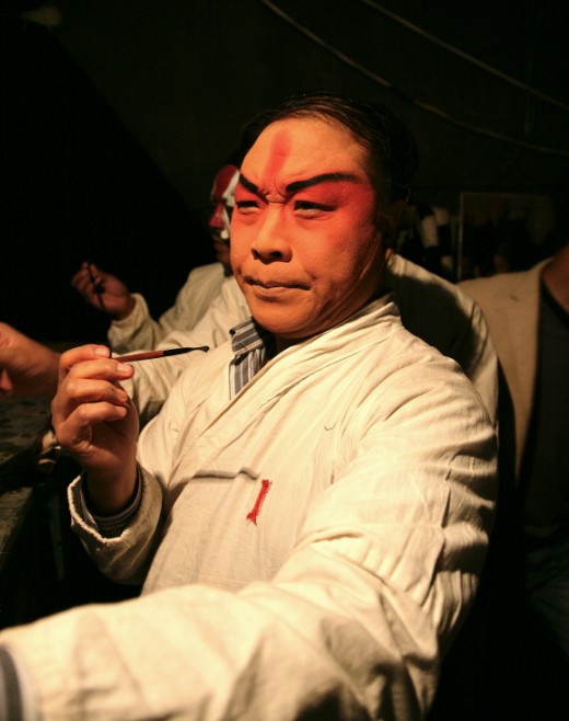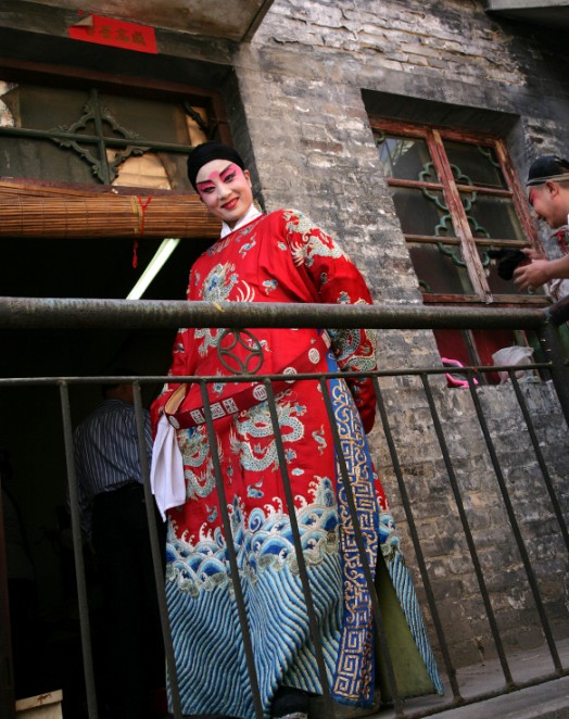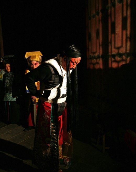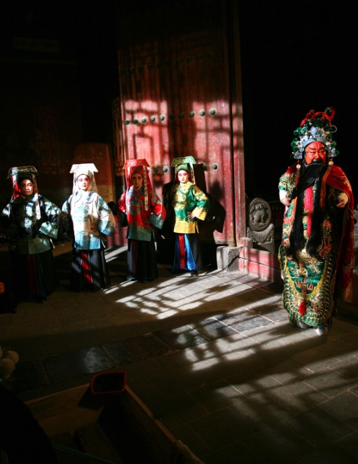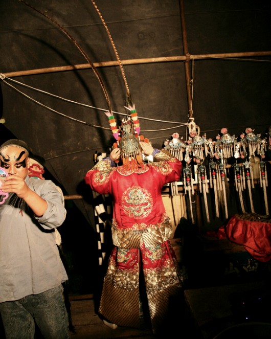 开戏之前,戏班的乐师们总会一阵响彻村镇的敲打,之后这种古老的板腔体,才会正式拉开架势,闪亮登场