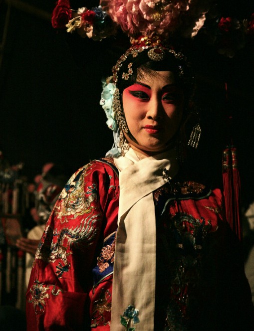 台后,台下,戏台里出来的戏子,美更甚,转身,笑颜,自信与美并重