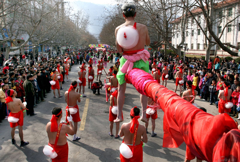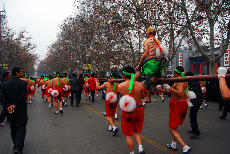 背冰俗称“亮膘”,是我省永济市长旺村在春节期间举办的一种民俗活动。在天寒地冻的环境下,一个个赤身裸背的男子,仅穿一件红色大裤衩,将一块约二寸厚的大冰块贴身背在脊背上,不断变换队形并进行表演。 关于这一习俗的渊源,当地有两种说法,一种为:相传清朝咸丰年间,洪秀全领导的太平军北征攻打蒲津渡时,满清守城将领夏新有下令拆了千户民房,架起了一道木城墙,木城墙上涂满了油,当太平军攻城时,清军就用火点着木城墙,太平军屡攻不破。太平军部将相福录是长旺村人,他提出让大家下黄河凿冰,然后背冰块灭火破城,果然大告成功。相福录解甲归田后,在本村组织民众再现当时背冰的情景,展示农民起义军勇敢、大无畏的气概。另一种为:北伐的太平军遇到险情,前有清军的火龙阵阻挡,后有追兵逼近,在这种危急的情况下,长旺村的村民相福录自告奋勇,率领200名精兵,化装成绵羊,将冰块投入火阵,为北伐的太平军打开了通路。后人为纪念农民起义军的壮举,每逢正月十五前后,都要举办“背冰”活动。最初是在脖子上套一个冰圈,在锣鼓声中昂然挺立,显示不畏严寒的气概,以后发展变化为背铡刀,再后来又发展为赤身背大块的冰凌绕村而行。 在背冰活动开始前先有一段小小的插曲,被当地百姓称为“逗社火”。大清早,一群10岁左右的黄河娃在大人的安排下,手敲锣鼓,怀抱公鸡,到各“社火头”家门前去耍闹,目的是督促“社火头”赶快带领大家闹“社火”。逗社火过后,就会看到一支由一名大汉扛着木檀大旗的队伍,接着五六支队伍相继接踵而来,较大的队伍在木檀大旗后面有铳队、龙虎牌、背花锣鼓队、背冰手,排在最后的是一座精致的 花轿,坐轿人煞是威风。这些社火队伍在村口一片空地集中后组成大型社火队,开始游街串巷表演,领头人肩扛木檀大旗,身背闪亮的大铡刀,威风凛凛,势不可挡。经过一个多小时的行进,背冰人终于抵达了胜利的“彼岸”,把身上的冰块重重地摔在地上,预示着“背冰穿越火墙”的成功。 整个过程一般持续三四小时。这支队伍组成八卦阵的队形,踏着鼓点,不断地变换队形并进行表演。“背冰”的主要表演动作有下河、破冰、匍匐前进、刀枪不入等动作。“下河”就是双手举起,双腿弯曲,左右弹跳踩动;“破冰”就是左右斜着上下舞动,左右弓步轮流倒换等形似农民锄地的动作;“匍匐前进”是单手撑地,右手“撇”打,形似动物爬行;“刀枪不入”是行进间的步伐,昂首挺胸,右手“撇锣”,动作和脚下的步伐整齐划一。整个活动的伴奏乐器“背花锣鼓”可谓别具一格,它既是伴奏乐器又是表演者手中的道具,当地人称它为“撇锣”,一根树枝扎绑在“锣”手后腰间,从脑后向上弯至头顶伸向脸前上方,大锣吊在树枝上,树枝上点缀着手工艺花和一面圆镜,“锣手”左手抓锣沿,右手“撇”锤,上下“撇”“敲”。一组表演队伍的伴奏乐器由四面锣一面鼓组成,鼓点名称为“四鼓点”。 背冰受到当地群众的欢迎,得到人们的自发传承,成为春节期间代表性的风俗活动,用长旺村人的话说是“敲一年锣鼓背一次冰,今年肯定好收成”。背冰这一活动在演技上没有太大的难度,但却是在一年中最冷的时候进行,是对男性体质、力量、抵抗寒冷及意志能力的严峻考验。长旺村家家户户都要出人参与,或背冰,或背着家中最锋利的兵器,比如铡刀、大刀等,在刺骨严寒中展示着威武,通过参与这一活动,鼓励民众在任何恶劣的环境下都要有战胜困难的勇气和决心。 ■ |