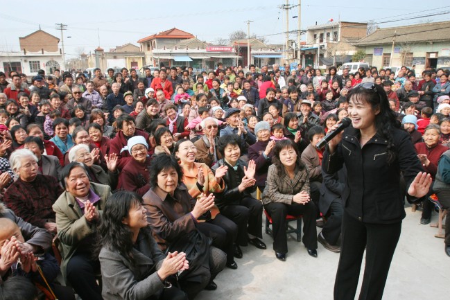 国家梅花奖获得者、临猗县眉户剧团团长闫慧芳在北景乡为乡亲们演唱眉户《山妹》选段 |