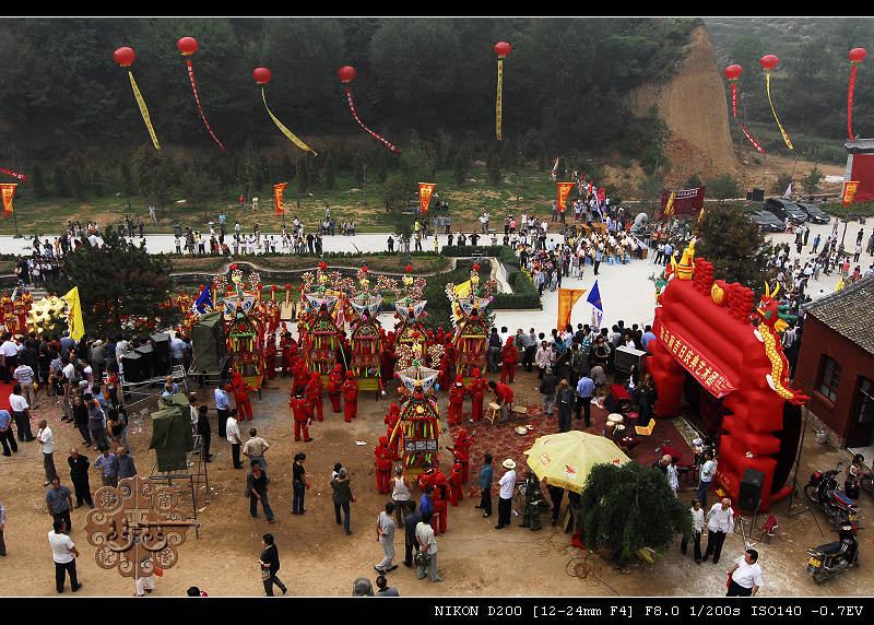 清朝咸丰年间岁贡牛联奎老先生作诗盛赞:“四景神车不计年,八村五社会流传,赛朝例卜三春幕,宴酒先尝二月天。二十四马楼列后,几重社鼓引当前。东下南北西流转,崇奉丹宵太乙仙。”