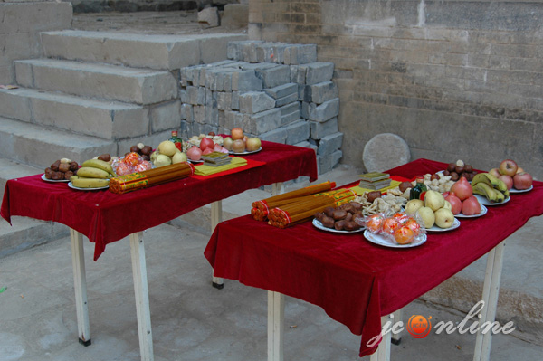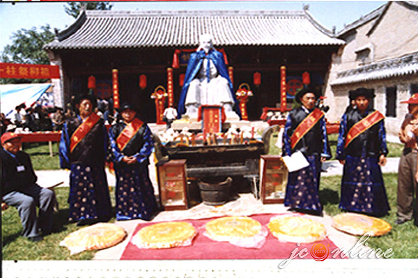河东的柳氏祭祖,和一般家族的祭祖方式大致相同,但是它有一个严格的规定,每年清明是最隆重的一次,清明的前三天一直到正清明这一天,这三天之内全族不能吃荤的,全部吃的是素的,这是一条,第二条这三天每天早上的第一顿饭,第一顿饭的第一碗,必须献祠堂,到祠堂献一下然后这一天才能吃饭,这是献三天,所以头一天各家到各家的坟上,第二天呢,咱们是一个老祖宗,咱们到祖宗坟上,第三咱们全村是一个大祖宗,回到祠堂上,这三天都有三天的礼数,那么这个献的东西,就是那个三神,就是用面蒸的羊呀、牛呀,就是这些,献三神,献锅,这些都是干干净净的,进祠堂都是穿的干干净净的,进祠堂不能随便进,进去的时候按顺序、按辈分,你不要看年龄小,人家辈分高,人家先进,一辈一辈拜完以后,最后才拜,献的东西都是有严格的规定,有三旗,七旗,十二旗,献的东西,这是一个,第二个呢还有一些在外地的,要回来祭祖来,在外地的也是在清明的这一天回来,所以说正清明的这一天,是祭祖的最高峰时期。