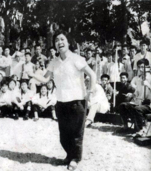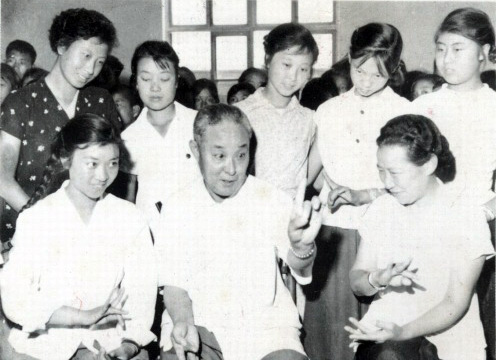 王秀兰在(左)丁果仙(右)向尚小云(中)先生学习指法