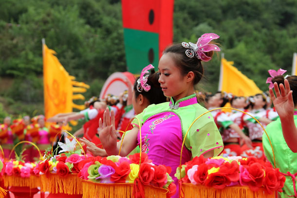 高平九莲灯是流传在我省高平市及周围地区的民间舞蹈,是当地元宵节闹红火时最活跃、最热闹的民间舞蹈之一。当地流传着“往前走、往后行,前面耍的是好花灯,琉璃灯、八角灯,圆秃辘辘西瓜灯,光秃碌碌白菜灯,后面跟着耍龙灯,映得满街红盈盈”的民谣,说的就是高平九莲灯的红火场面,以高平市店上村与凤和村最为著名。 清乾隆三十九年(1775)《高平县志》记载有“上元,县华灯,烈焰烟火腾灼,箫鼓喧闹,群履秉夜嬉游,三更乃止。十六日乡城男妇走……”“上元”是元宵节,“华灯”就是九莲灯。据民间传说,“九莲灯”的由来,是天上九个仙女下凡,看到人间的繁华不愿回去,就留在人间耍灯共舞,后来结婚生子,所以九莲灯就由原来的9个人发展到18人乃至更多。传统的九莲灯大都由男青年来表演,到上世纪40年代后期,高平市风和村发展为全部由女青年来表演,均着青年装束。夜幕降临,舞者身穿彩衣,手持彩灯,跑场舞灯完毕,演唱民间小调或者地方秧歌。 九莲灯的道具主要有飞灯和花果灯。飞灯是用苇秆或者竹篾扎成白鹤或者金鱼、蝴蝶、蜜蜂的造型,外面裱糊白纸,彩绘,然后绑扎在长竹竿上高高举起像飞起来一样,以此作为队伍的引灯。花果灯是先用木板或者竹篾做灯盆架,灯盆架一般为长方形、扇形或者六角、八角形。除盆沿粘贴彩色纸条外,其他地方均用白色透光纸裱糊,可以在白纸上彩绘花鸟、虫鱼、山水、人物。选合适的树枝做花枝,枝上扎彩色牡丹、菊花、荷花、梅花等纸花,粘相应的花叶,插在灯盆两边;或者在树枝上绑扎用纸浆托成的桃子、石榴、梨、香瓜果类等造型(每盆只插一种类型的花或果)。 “舞灯”是高平九莲灯的主要表现手段,灯的舞法包括:“溜灯”、“甩灯”、“对灯”、“分灯”、“绕灯”、“晃灯”、“转灯”等。艺人们将灯的表演特色概括为“快如风、稳如钟”。五彩缤纷的花灯在烛光的掩映下,鲜艳夺目,映红了表演者的张张笑脸,而身影却淹没在夜幕之中,多变的舞步时隐时现,飘飘欲仙,富有诗意。 丰富的传统跑场路线是高平九莲灯的主要特点。跑场又有“大场”和“小场”之分,“大场”有“走场”、“溜场”、“跑场”、“倒搭钩”、“分场”、“小穿花”、“双进门”、“剪子股”、“蛇脱皮”、“分场”、“一窝蜂”等;“小场”表演时有唱词,演唱民间小调,唱一段变换一种队形,边唱边做甩灯的动作。另外还有一种“对字场”,表演者在演唱的同时,还要摆出吉祥的文字字样,如“天下太平”、“欢庆”或者村名,恭祝四海安泰,如意吉祥。“大场”队形路线在表演时可以随意组合,正反旋转。快速交叉的线路,多变的画面,紧张而又激烈的情绪,使得整个舞蹈场面充满了生机和活力。 高平九莲灯的音乐伴奏是具有乡土气息的民间吹奏打击乐,热烈火爆,与舞蹈配合协调,浑然一体。舞蹈演唱多地方民间小调,旋律优美,淳朴热情,更加增添了九莲灯的地方特点。 ■ |