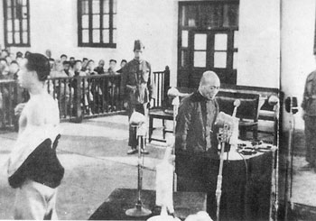 我国司法机关在审判日本战犯过程中,亦复如此。根据我国全国人大常委会发布的《关于目前关押的在日本侵华战争中的战争犯罪者的处理决定》,1956年6月,我国最高人民法院特别军事法庭在太原公开审判了被告富永顺太郎的战争犯罪案、特务间谍犯罪案和城野宏等8名被告的战争犯罪案。特别军事法庭在审判活动中遵循的法律程序是:(1)开庭审判前5天,法庭应将起诉书副本连同日文译本送交被告人;(2)被告人有为自己辩护的权利,也可以由法庭委托在中华人民共和国司法机关登记的律师为被告人进行辩护;(3)法庭所使用的语言和文件,均应译成被告人可以理解的语言和文字;(4)在庭审过程中,被告人可以向证人或鉴定人发问,各被告人都有最后陈述的权利等。从这些审判程序中不难看出,我国司法机关在审判日本战犯过程中,是充分尊重了日本战犯的人格和应有的权利的。