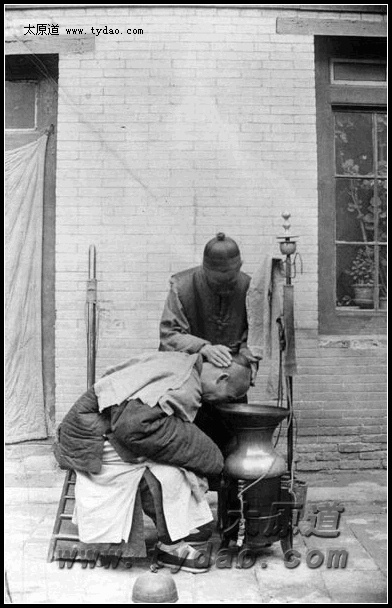 正在理发的GEORGE LOUIS WILLIAMS(1900年7月31日在太谷被杀) |