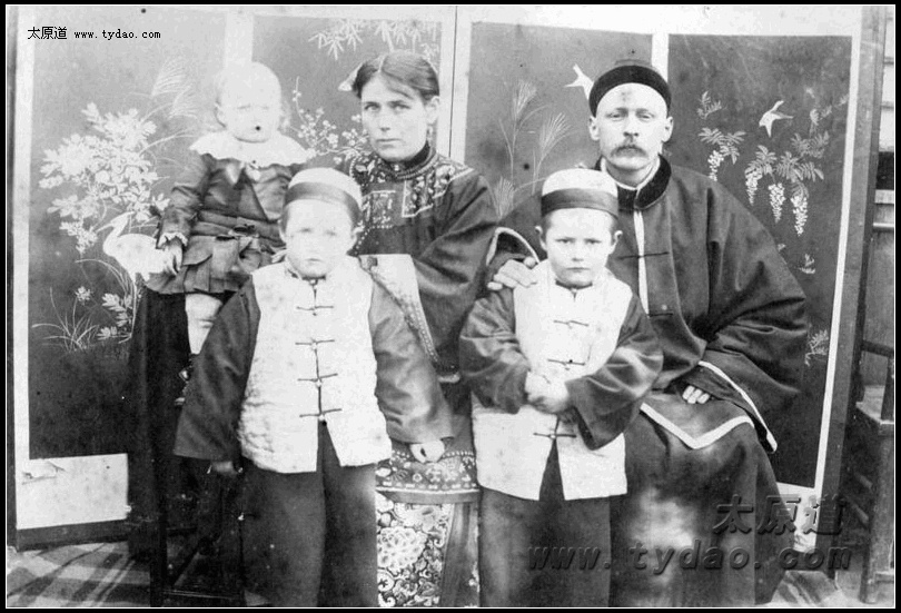 在汾州教会的Charles与Eva Price夫妇和女儿Florence,