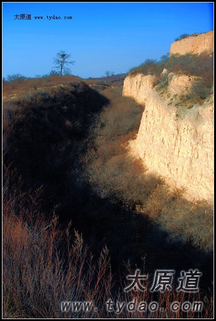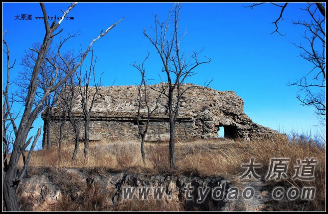 追循着前辈的记忆,我们来到了黑驼村,小村的西侧,大方碉依旧雄踞山巅,睥睨四野。与其它阎军碉堡不同,大方碉更象一座晋北长城边随处可见的明代军堡,四四方方的形制,夯土构建的堡墙,墙外环绕全城的壕沟,单就外形而言,把它称为大方堡似乎更确切一些。大方碉所在的山头地势险要,视野开阔,主碉周边散布着几座砖石结构的小碉堡,还建有直通山下的双塔寺要塞的交通沟,正因为如此,它成为东山四大要塞争夺战结束之后,阎军在东山上掌握的为数不多的阵地之一。由于战争破坏程度较小,又人迹罕至,大方碉成为现存规模最大、保持原貌最好的阎军要塞,这里现在又成为摄影爱好者的另类创作基地和自行车爱好者的骑行乐园。 |