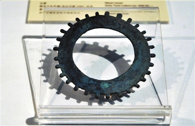 有两件出土器物引起人们长久关注。其中之一是一个出土于陶寺晚期墓葬的铜铃。经化学定量分析含铜97.86%、铅1.54%、锌0.16%,采用合范浇铸技术制造。虽然铸造工艺粗糙,器壁厚度不匀,但合范浇铸仍是前所未见的创举。这是迄今所知中国最早的金属乐器。