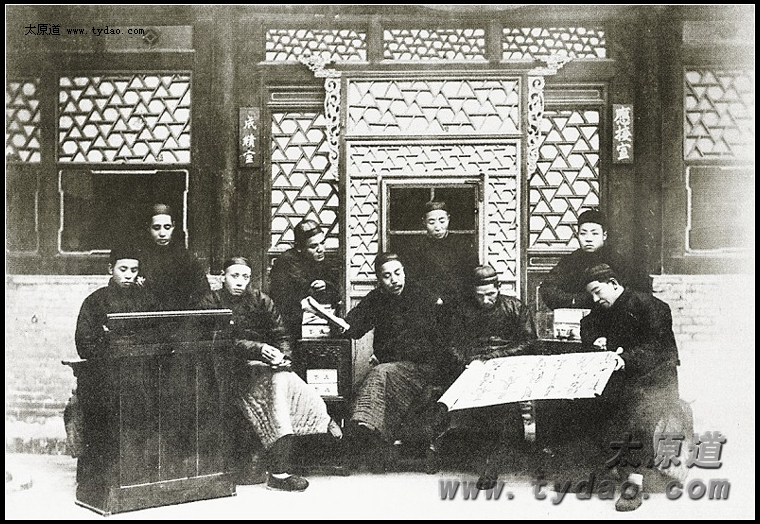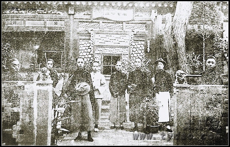 图一:这张照片摄于民国九年(1920),为竞新学校创办人渠仁甫与学校教员合影。从左至右依次为:韩耀明(校长,是渠仁甫先生亲赴太原聘请的,学校中一切事务均委托他全权办理)、颉履祥、渠仁甫、高硕年、杨芳(清末秀才,著名书法家)、阎敬卿、张学钦、高淳如、梁乃千。竞新学校所聘教员都是饱学之士,在教学上,他们因村施教,采取教育与实验相结合的办法,使学生能心领神会、融会贯通,取得很好的教学效果。