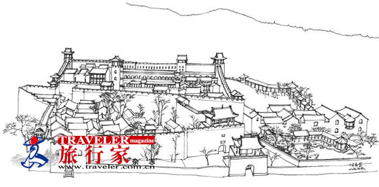 古堡的正门在南面,经过两层楼的关帝庙进入头道堡门,拾阶而上,眼前景物步移景异。从河边看古堡是幅凝固的画面,堡内则是流动的影像。一会儿一座飞虹般的小桥掠过头顶,一会儿一座高墙横在眼前,而一转角又柳暗花明,你永远猜不到下一步的影像是什么。因为古堡损毁比较严重,下一步可能是惊喜,也可能又是怅然,然而不论如何,这是座中国罕见的、地地道道的山地古堡,不仅仅因为它有高大壁垒,它的美也不仅来自古老,而是它自身确实漂亮,煤灰和破败都掩盖不住的漂亮。