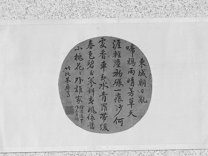《画堂春徐沟道中作》镜心一幅,为朱彝尊来山西时的亲笔作品,其词曰:“东城朝日乱啼鸦,雨晴芳草天涯。轻尘初碾一痕沙。何处香车。春水青罗带缓,春山碧玉簪斜。春风依旧小桃花。花外谁家。”后署:“徐沟道中作,三月朔。竹垞朱彝尊。”朱彝尊早年曾经参加抗清,失败后心灰意冷,辗转各地依幕求食,他曾在康熙三年(1664)起到山西依曹溶幕,在山西盘桓多年,与山西著名文人傅山、吴雯等均有深厚交情,但是由于种种原因,他留在山西的墨宝并不是很多,这阙词清丽简爽,读来朗朗上口,是典型的浙派笔法,这样的一幅兼具文学性和艺术美的作品,实在不可多得。