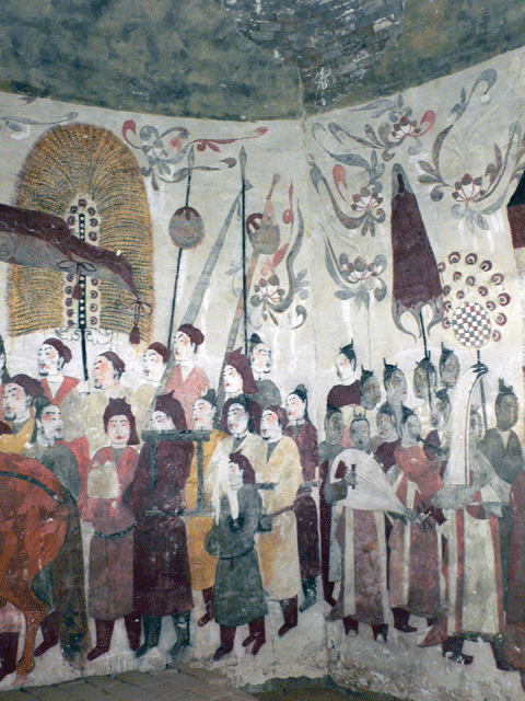 按墓志铭所写,此处正是北齐大将徐显秀的墓室——徐颖,字显秀,恒州忠义郡(今河北省北部)人,是一位能征善战的武将。其祖徐安、其父徐珍,都曾任北魏边镇高级官员,他自幼生长在北地,少年豪侠。北魏末天下纷乱,军阀蜂起,他先投尔朱荣,后追随北齐皇帝高欢,作战勇猛,屡建功勋,逐步升迁,曾官至太尉、拜司空、封武安王。公元571年死于晋阳,也就是今天的太原,享年70岁。查对文献,《北齐书》、《北史》和《隋书》均有关于徐显秀的记载,其经历、职官与墓志铭大致吻合。