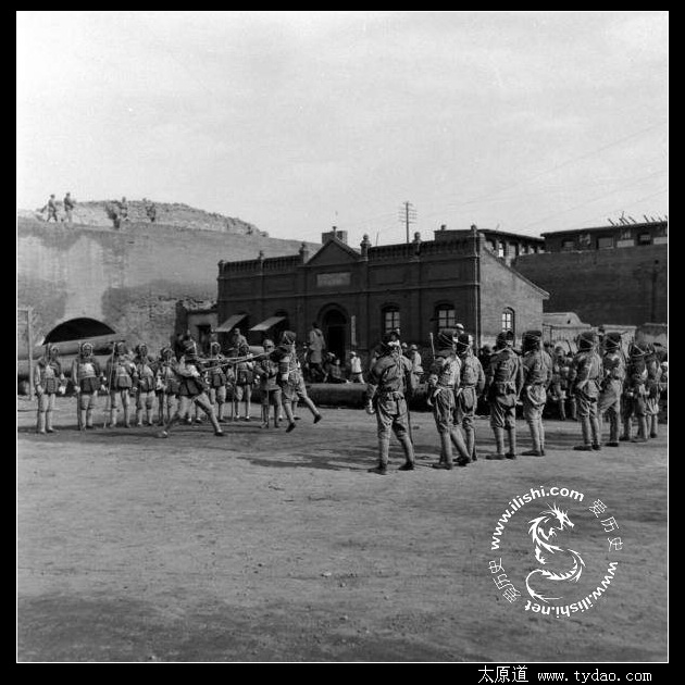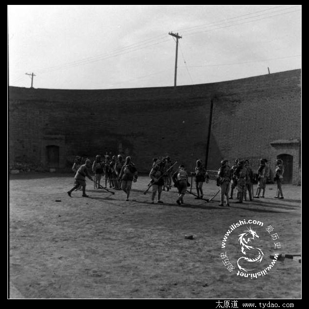 正在进行刺杀训练的士兵,拍摄地点应该是在某座瓮城内