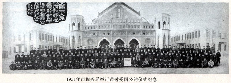 1951年4月21日,太原市税务局在海子边大礼堂前合影
