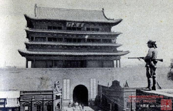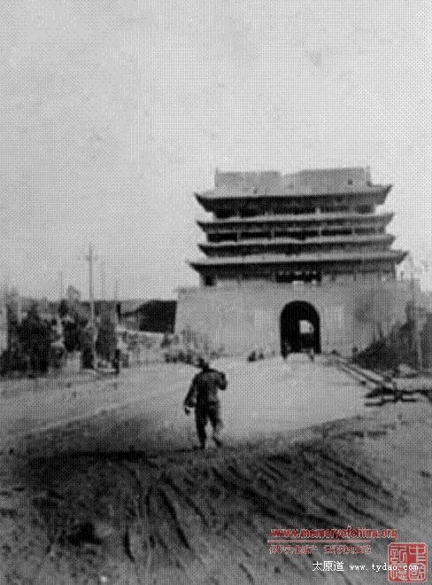 日军进攻太原,照片中应该是太原城西北角楼或西南角楼