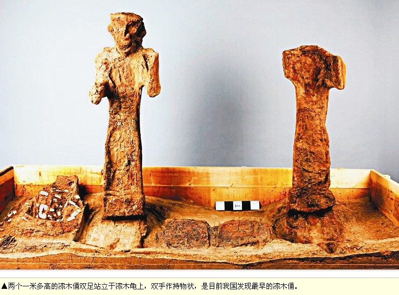 发现的漆木器有坐屏、俎、罍、豆、壶、案、牺尊、方彝、杯等物,杯有多样,有双耳杯、单耳杯、角状杯等等。在二层台平面上有漆木盾,漆木佣。山西西周墓地漆器较多,但是保存状况极差,像大河口M1这样种类多、保存相对尚好的不多,而且,在以前发掘的西周墓葬中,还从来未出现过的漆木佣。也就是说,这是首次,也是目前中原地区墓葬中发现最早的漆木佣。