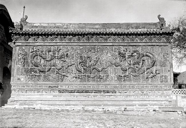 大同本地传说,建造龙壁,北魏太武帝拓跋焘首开先河,他曾在宫廷之内建造了1座黑色团龙壁。而大同市现存的9座龙壁,多数为明清时期建造。