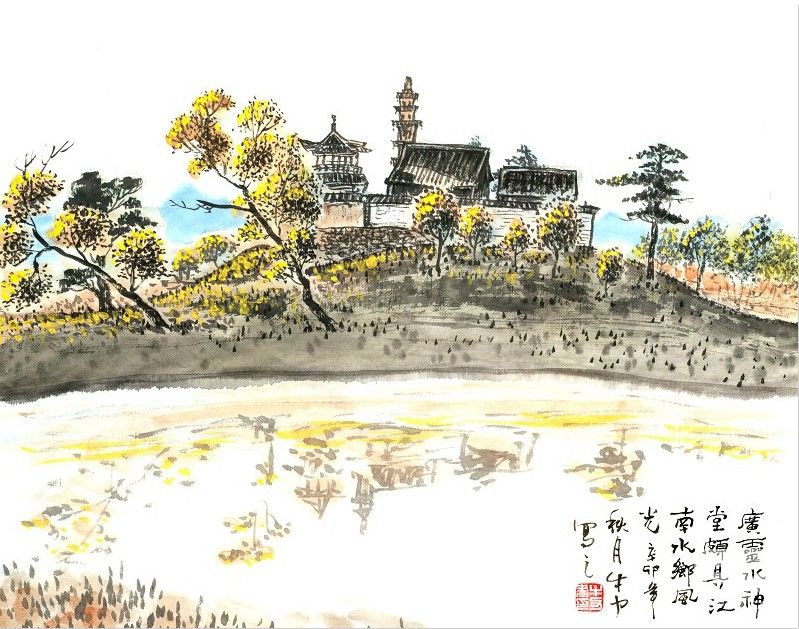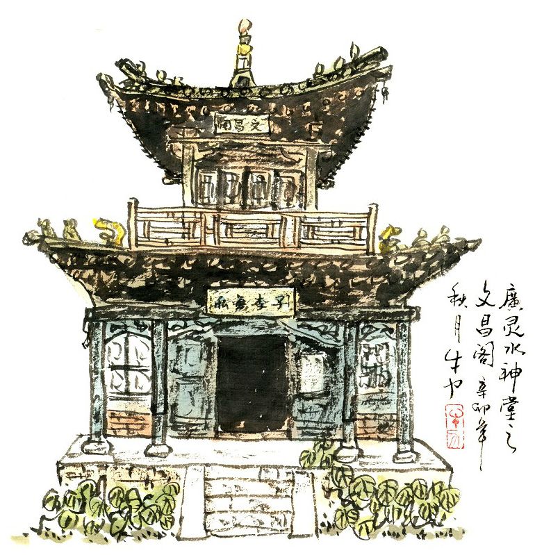朱休度爱好诗文,在繁忙的公事之余,游走于广灵的山水之间,水神堂是他经常光顾之地。清嘉庆元年秋天,朱休度上书朝廷,请求病退,朝廷批准了他的请求。临别之际,广灵百姓恳求他留在广灵,但朱休度去意已决,后当地百姓请匠人画了《壶泉垂钓图》,刻在他经常垂钓处的石壁上。此画经数百年风雨洗礼,现已不存,但记者推开水神堂的北门,在朱休度垂钓处,仍然能看到后人专门为纪念朱休度功德而镌刻的“卧云钓台”四个大字。有水方能垂钓,此四字或可视作对塞外水乡的又一注解。