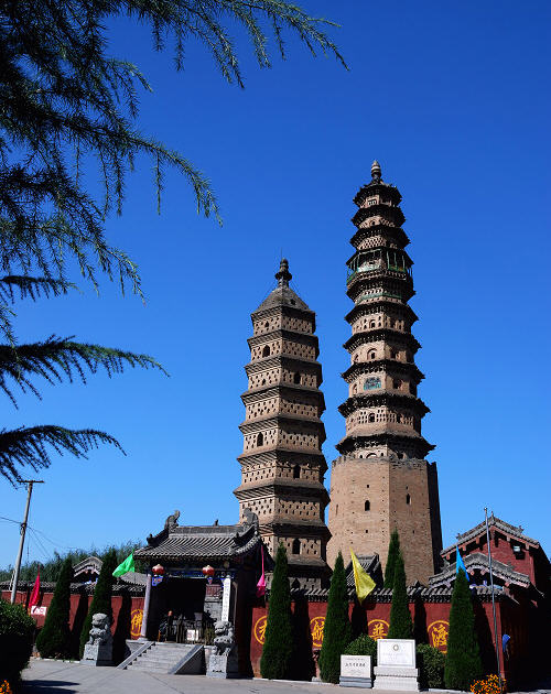 “快看,那两座塔真漂亮!”在山岭纵横的太行山深处,沿晋阳高速路向皇城相府方向西行十六七公里,透过车窗北望,一处金碧辉煌的寺院尽收眼底,眼尖的游客总会被居于寺中一高一低的双塔吸引。