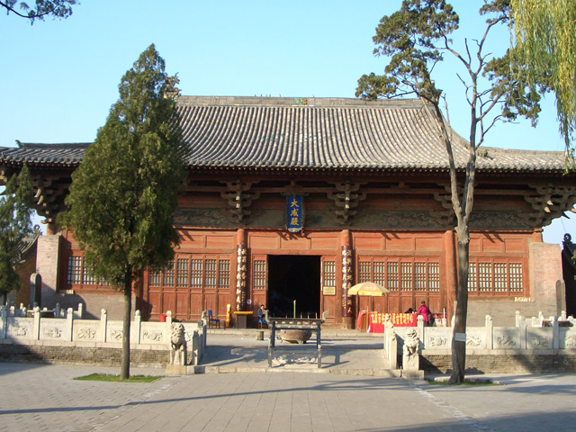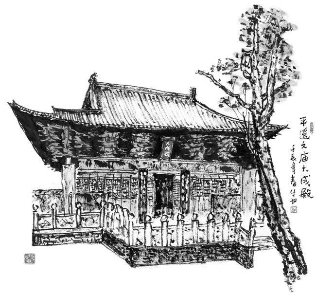 平遥古城里保存着大量珍贵的明清建筑,在这些古建簇拥中,一处城内年代最早的建筑遗存更显弥足珍贵,它就是平遥文庙内建于金大定三年(公元1163)的大成殿。