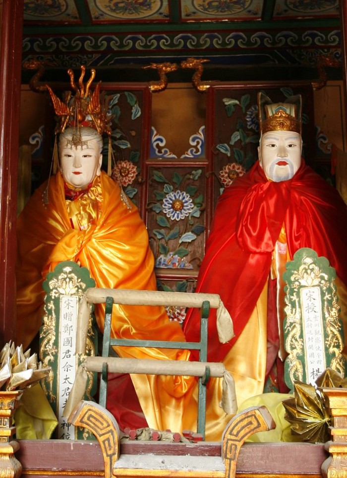 步人“杨忠武祠”大殿,坐北朝南的高台上,正中塑着老将杨业与夫人佘老太君之像,其八子两厢依次排列,台下三面为杨家历代名将塑像,共22尊。塑像气宇轩昂,威武雄壮,让人肃然起敬之余,仿佛可感到当年的杨家满门保家卫国、血染疆场、英武不屈的忠烈风范。正殿背后,有后世修建的“凌烟阁”,宏伟壮阔。
