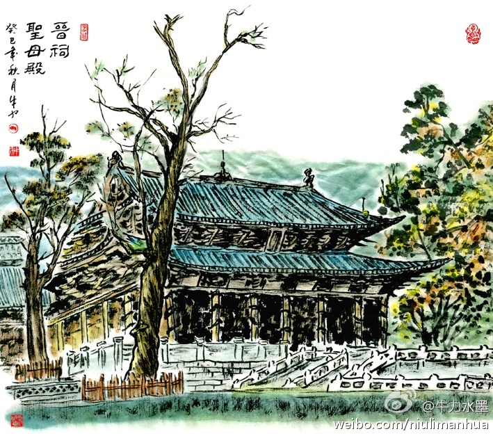 从山门进入晋祠,选中轴线来看,第一座建筑便是水镜台,是古代为神唱戏的地方。水镜台为明、清建筑,东面是典型的明代重檐歇山顶风格,西面则为标准的清建筑式样:单檐卷棚顶。
