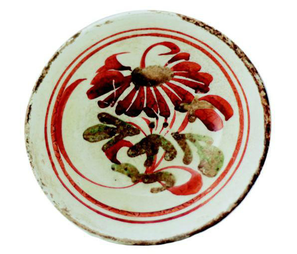古瓷窑名称:长治 窑品名:白釉红绿彩 花卉纹盏年代:金 红绿彩瓷是金代北方创烧彩绘瓷新品种,旧称“宋加彩”,流行于金、元、明三代。红绿彩瓷艺术对元明两代景德镇的制瓷产生了深远影响,使中国瓷器走上五彩缤纷的彩绘之路。 红绿彩瓷属釉上彩,制作方法是在已烧好的白釉成品瓷器上,用毛笔蘸红、绿、黄彩料绘画装饰,再置于炉中,用800℃左右的低温进行烘烤,使彩料与瓷釉慢慢烧结,在白釉上呈现鲜艳的红绿彩。 红绿彩瓷以大红大绿民间喜庆色彩为其基本色,具有鲜明的地方特色,故深为百姓喜爱。山西烧制红绿彩瓷的著名瓷窑有长治窑、孟家井窑。长治窑红绿彩瓷较多地采用红彩和绿彩,以没骨画法为主,简笔写意,画风朴拙,装饰题材有花鸟、鱼藻、诗文等。此盏施白釉,内壁绘双圈弦纹,底心为折枝菊花,红花绿叶,气韵生动。 ■ |