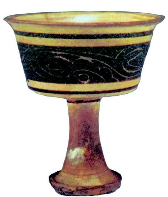 山西名窑珍品赏鉴系列23 霍州窑白地黑花划花高足杯 |