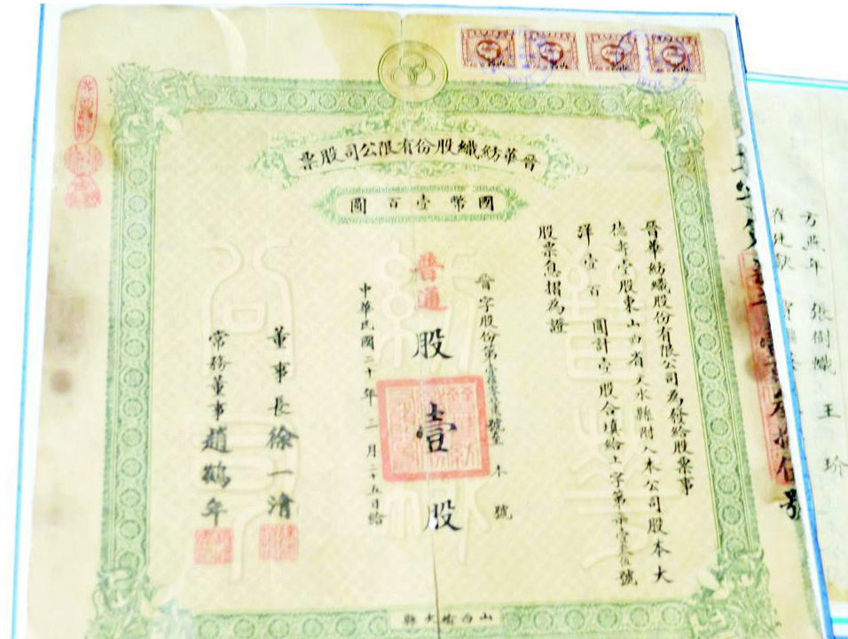 晋华纺织厂是山西近现代重要的工业遗产,创始于民国十年,曾是山西规模最大的国有纺织厂。 据晋华纺织厂厂史记载,1919年,榆次商业资本家贾俊臣、徐秉臣、郝星三与山西银行经理徐一清、省财政厅长崔文征,以及榆次县乡绅赵鹤年等集资150万元,在榆次城北门外创办晋华纺织股份公司。1924年,公司正式建成投产,改名为榆次晋华纺纱厂。1948年该厂被人民政府正式接收管理,成为山西轻纺工业的代表。 这是三个记载着晋华纺织厂发展历史的文件。最右图是民国九年二月就成立晋华纺纱股份有限公司事,上报县知事公鉴一份,并附有筹备期间发布的招股章程及发起人名单; 中间图为民国二十年三月二十五日晋华纺织股份有限公司股票一张,为普通股一股,市值国币一百圆,盖有董事长徐一清和常务董事赵鹤年的名章,内容是“德寿堂股东山西省文水县附入本公司股本大洋壹百圆,计壹股,合填给土字第柒壹叁伍号股票息折为证。” 左侧图为民国二十年八月三十日晋华纺织股份有限公司的“晋华纺织股份有限公司为发给息折事”一份,“平遥糟房行股东平遥县籍附入本公司普通股本大洋壹百圆,计壹股,除填给投票收执外,合填给土字第捌叁陆贰号息折,以凭支取正息红利,此据”,即股东“平遥糟房行”可凭此支取正息红利。 目前,晋中市文物局已将晋华纺织厂作为重要的近现代工业遗产推荐申报第七批全国重点文物保护单位。据文物局的同志介绍,如果今年下半年通过了国务院的正式审批,晋华纺织厂将成为山西省第一处近现代工业遗产类全国重点文物保护单位。到那时,对这三件藏品,将会有更多、更详细的解读。 ■ |