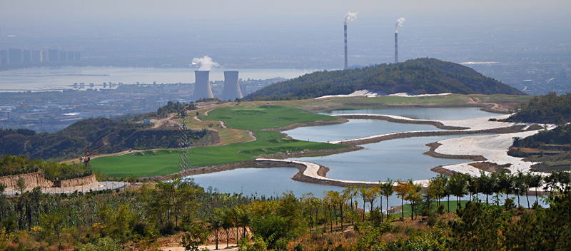 启春阁上远眺,曾经的工业废料场现在的高山湖泊群(大兵拍摄)
