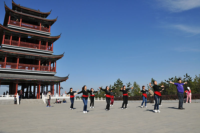 启春阁广场上健身的市民(大兵拍摄)