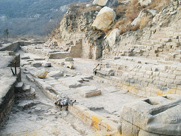 该项目领队、中国社会科学院考古研究所学者李裕群介绍,童子寺是一处石窟和地面寺院相结合的特殊类型。特别是佛阁的出现,与大佛雕造密切相关,是现存中国最早的佛阁实例。 童子寺遗址位于太原市西南约25公里龙山之北峰,为北朝隋唐著名的佛教寺院,创建于北齐天保七年(556年),金天辅元年(1117年)毁于兵火。遗址分寺院区和佛阁区,现存北齐摩崖大佛、燃灯石塔等。 佛阁是童子寺主体建筑,创建于北齐,依大佛龛建造,东南北三面砌墙,按叠压关系可分早晚二期。早期为北齐墙体,条石垂直垒砌,墙体厚2.2米,外壁素面,内壁均雕有北齐造像特征的千佛龛。佛阁中间开门,后壁有一4米高的石砌佛座,座上为高达20余米的无量寿佛。阁内南壁分上下层,下层为石条砌筑并列的两个佛龛,内各置北齐圆雕一佛二菩萨像。上层台依壁置北齐圆雕三佛二菩萨像。晚期为唐代护墙和前廊,北壁护墙上新发现有唐代绘制的佛龛壁画,内绘1.65米的坐佛,是中原地区保存年代最早的寺院壁画。在壁画揭去后,发现唐代护墙中镶嵌一块唐开元二年(714年)童子寺浮图铭方石,正面雕坐佛龛,两侧面为精美的线刻佛说法图。■ |